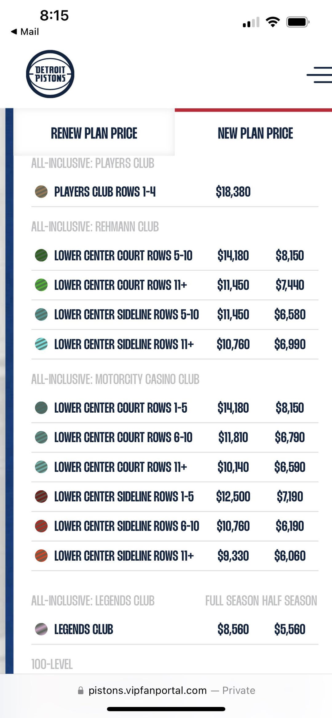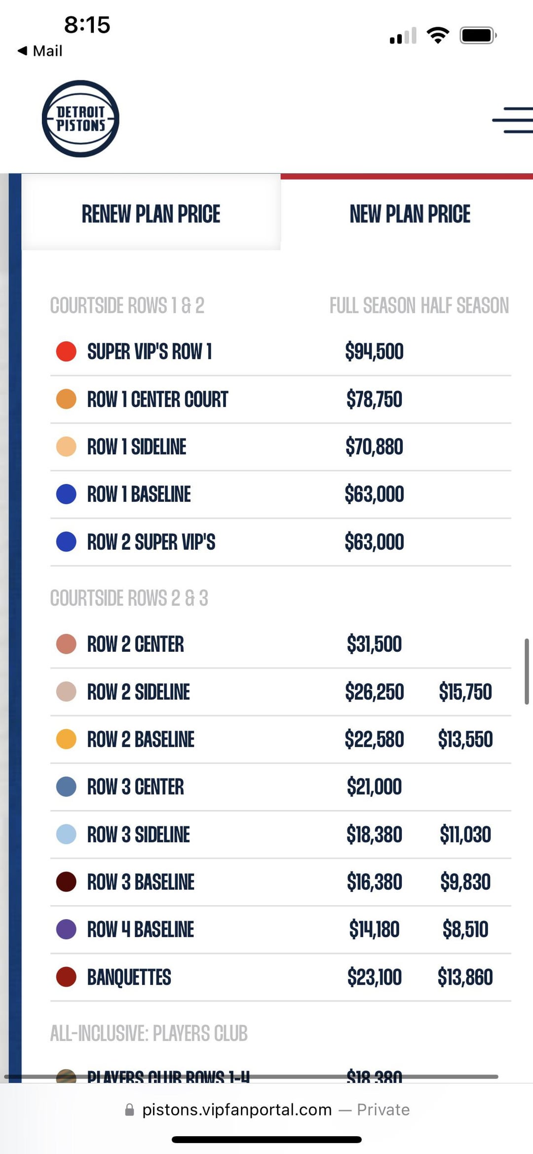 2023-24 season ticket prices by okdrab Central DivisionDetroit PistonsEastern Conference Prev Post Loved the team’s reaction to Derrick Rose getting the call. February 26, 2023 Next Post Jaylen Brown on 76ers fans: It got a little disrespectful. Before the game, we were entering the arena there was people saying, ‘I hope you tear your ACL.’ February 26, 2023 2 Comments PJJefferson 3 years ago What are the two prices next to each other? Chart doesn’t explain. venk 3 years ago Can’t imagine spending nearly $100K to get prime seats watching a rebuilding team. (I imagine they go to corporations mostly): Write A CommentYou must be logged in to post a comment.