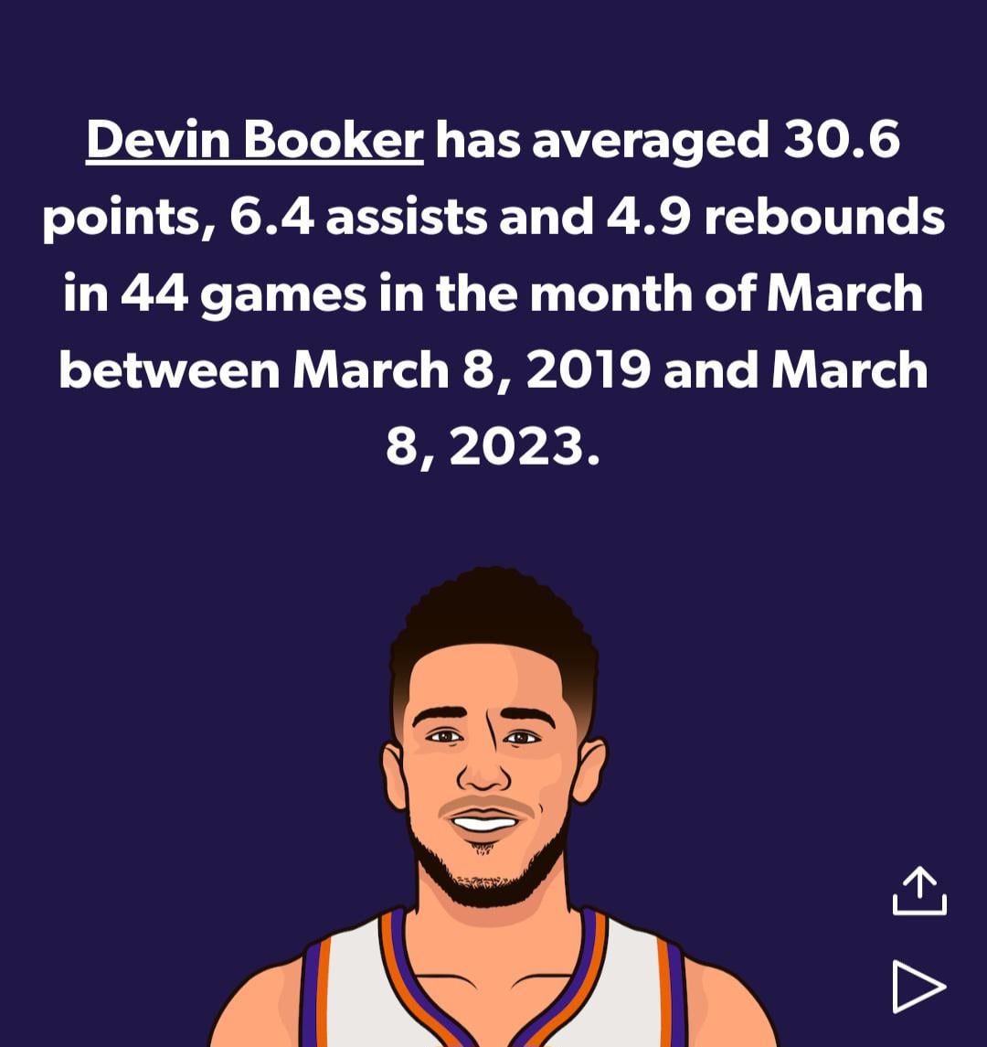 Correction: the image is only showing back to March 8, 2020. We played two games in March prior to that in 2020, going 1-1. Suns March record from March 1, 2020 through today’s game is 30-7