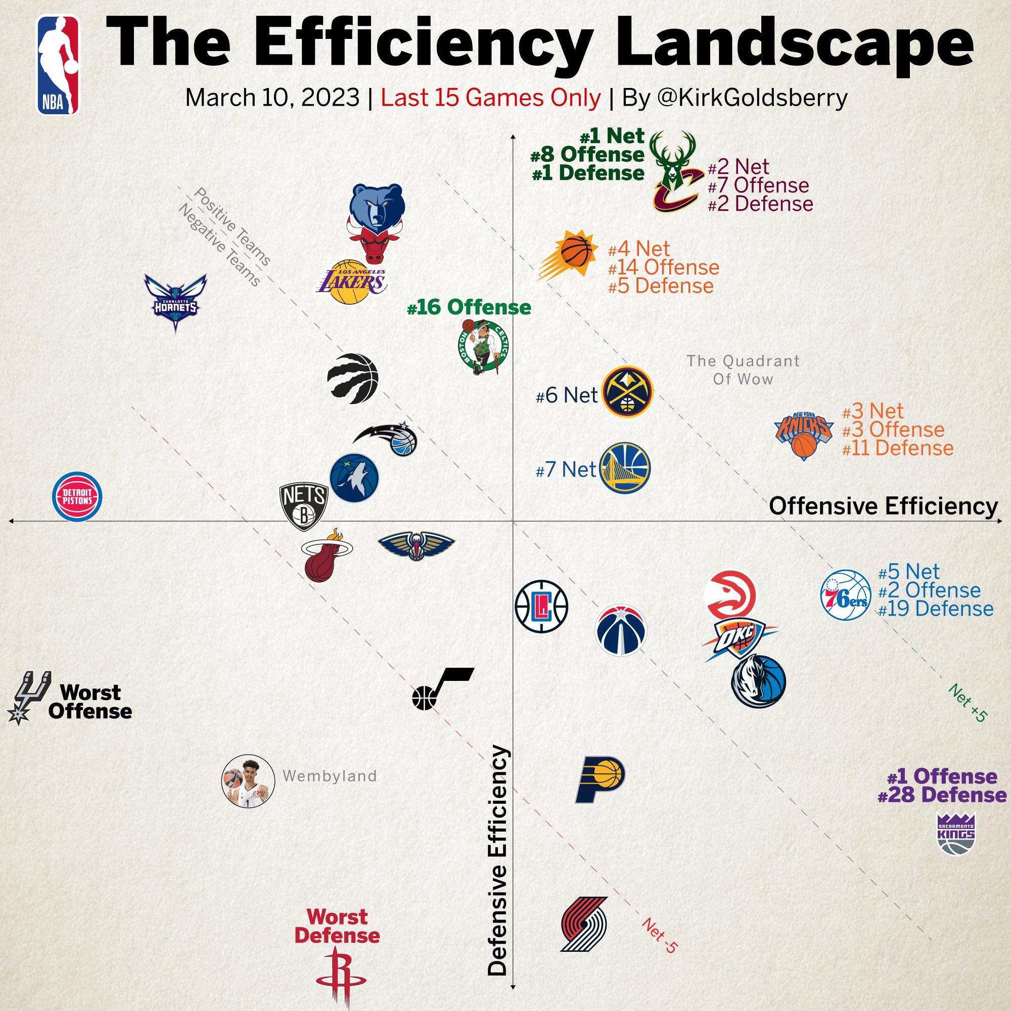 Obviously we’re not good we’re on the bottom left in Wembyland lol! However I found it interesting how we have the worst offensive efficiency while our defense efficiency isn’t good either but we’re not the worst in defensive efficiency that would be the Rockets.