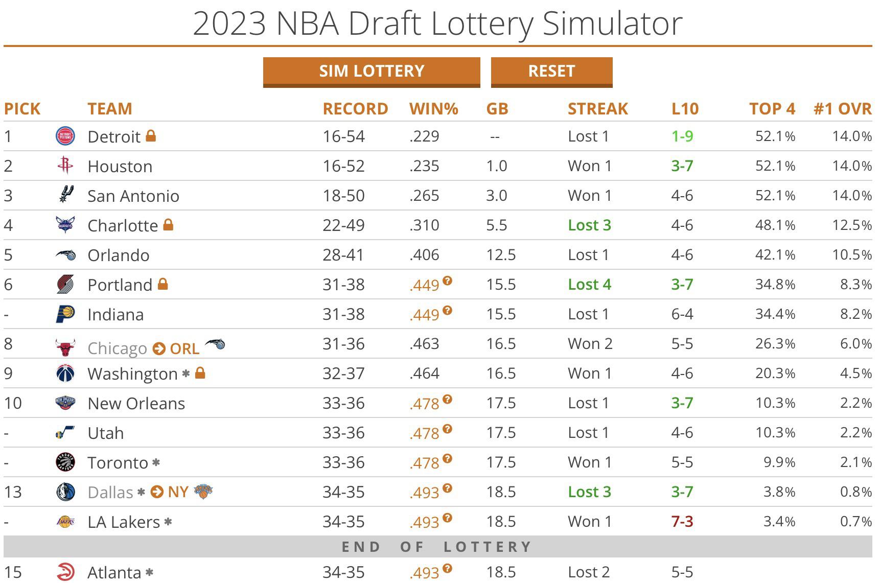 We are also the lowest ranked team to have a ZERO percent chance of pulling Victor Wembenyama currently.