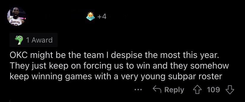 We’ll just keep pushing forward, I trust our Thunder squad 110% to deliver and put in the effort in games. Lakers will just have to keep up.