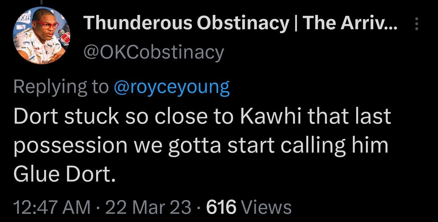 New Nickname Alert by spawklez Northwest DivisionOklahoma City ThunderWestern Conference Prev Post Kelly Olynyk appreciation show. It was never a tank. Who are we rooting for? March 22, 2023 Next Post PRE GAME: Chicago Bulls (34-37) vs Philadelphia 76ers (48-23) (March 22, 2023) March 22, 2023 3 Comments ShabbyLiver 3 years ago gLUe PreachitPerk 3 years ago Damn that is a good one! Edit: Anyone with quality photo shop skill ready to add Lu’s face to an Elmers Glue bottle?!? That is an insta-buy T shirt. Also: https://imgur.com/a/j5rRvxU Maybe: Thunder Brand Lu All G2Gankos 3 years ago Surprised this is my first time seeing this. It was right there the whole time! Write A CommentYou must be logged in to post a comment.