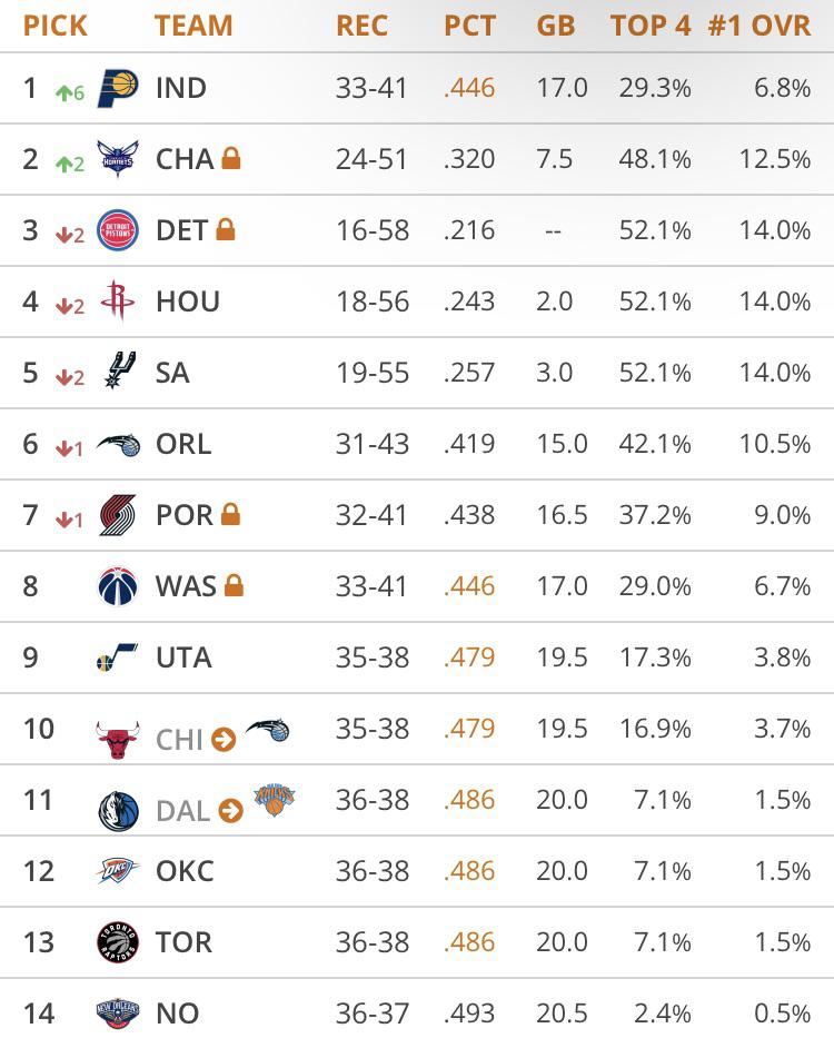 I could be wrong but I think the wizards need to win at least one more game otherwise even if we lose out we’d be 8th in the lottery.
