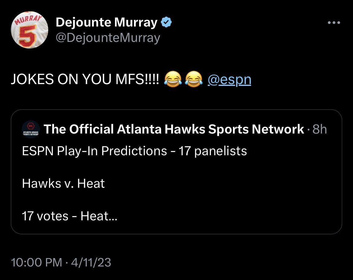 Tell Them Dejounte Joke Is On Them Let’s Fucking Go Hawks WWWWWWWWWWWWWWWWWin