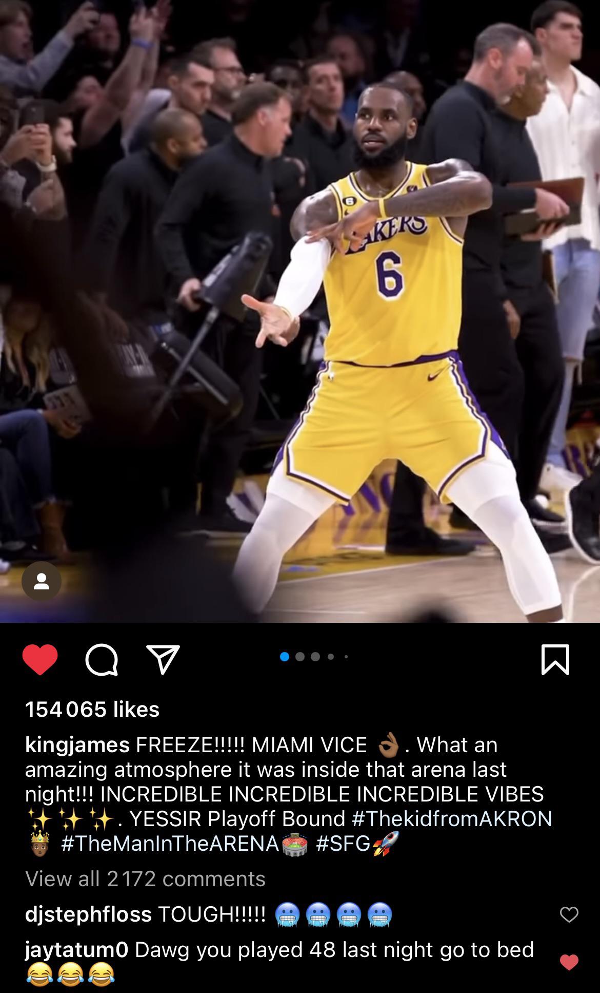 Looks like LeBron couldn’t sleep all night lol, peep Tatum.