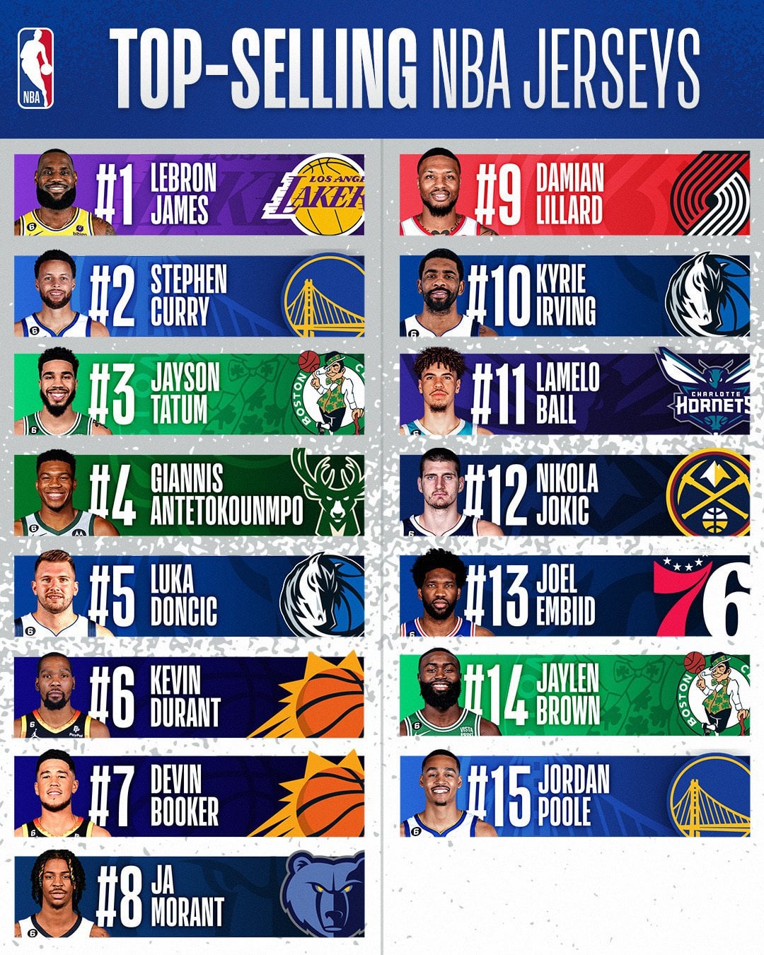 The NBA's top-selling jerseys list… based on https://t.co/I0ypSvyq5i sales from the second half of the 2022-23 season! pic.twitter.com/9qL06ubqX0