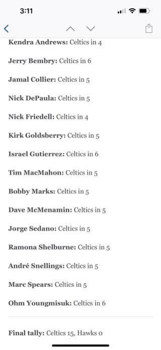 Honestly appreciate the Celtics in 6 crowd, giving our boys a little credit. Regardless, this is perfect locker room cork board stuff