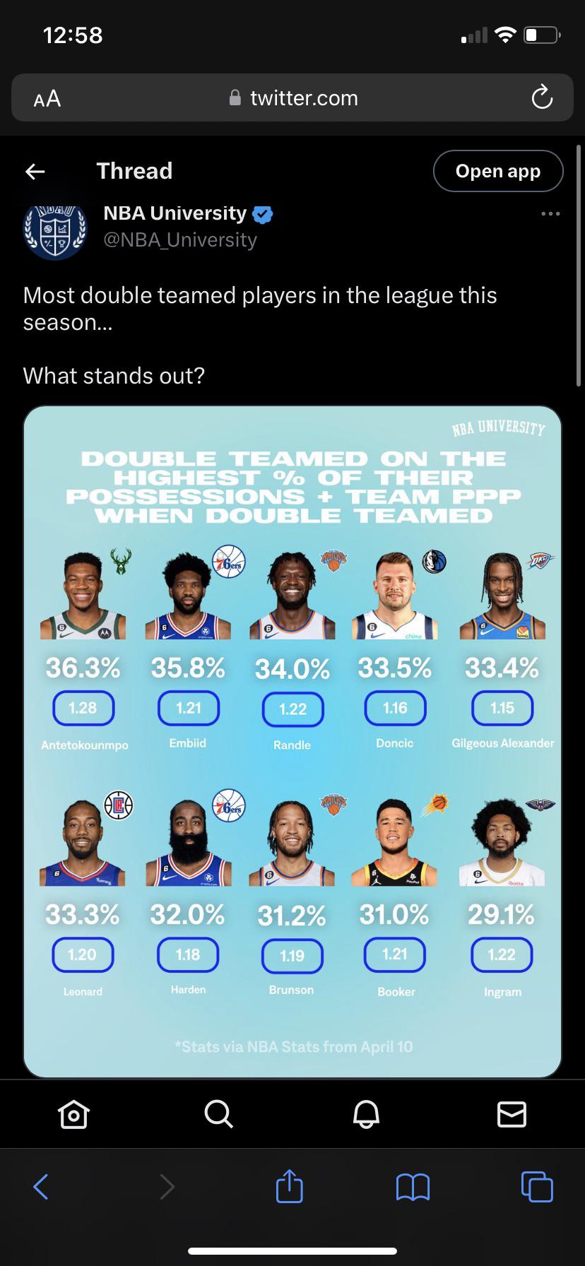 Randle being the 2nd most efficient player when doubled out of the whole list is super impressive, people have some false notion that he sucks when doubled