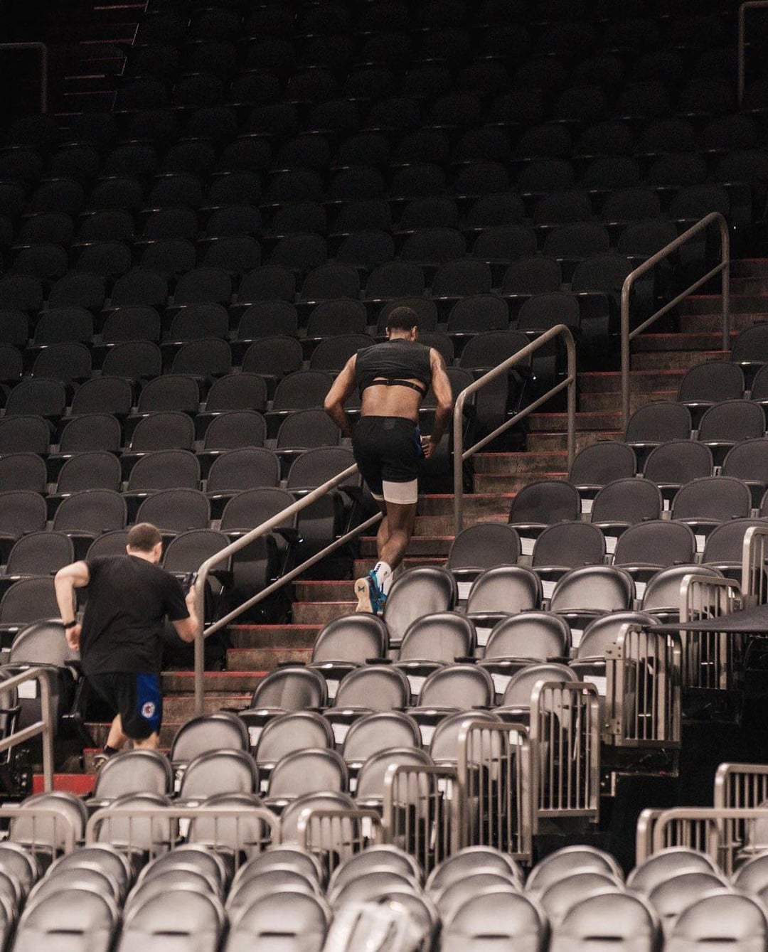 Is the clippers trainer trying to stop PG from running out from the arena ??? Jk lol