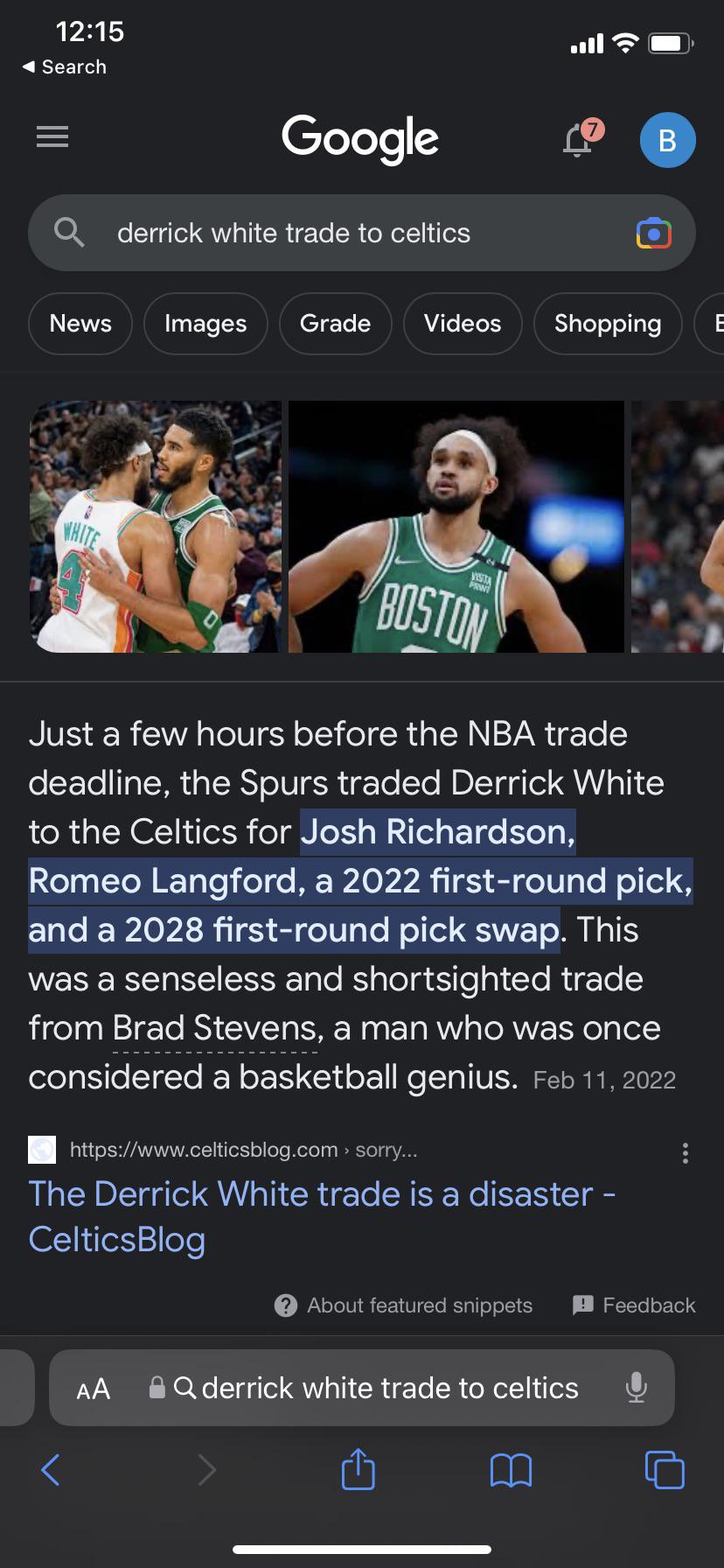 This was an A+ trade. That 1st round pick ended up becoming Blake Wesley. Those late firsts arenāt worth a whole lot when youāre competing for chips, it just sounds like a lot to give up if you just read a headline. I love J Rich, but heās no where near the difference maker DWhite is.