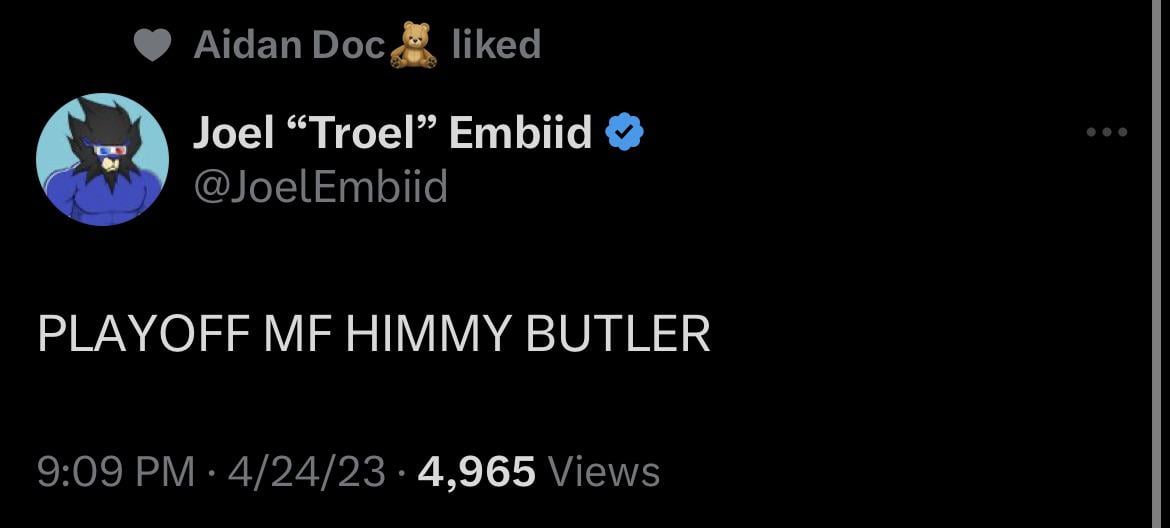 Talent recognize talent.. Even Butler said Embiid MVP. Damn we would have ripped with Butler on this team.. team fucked up.