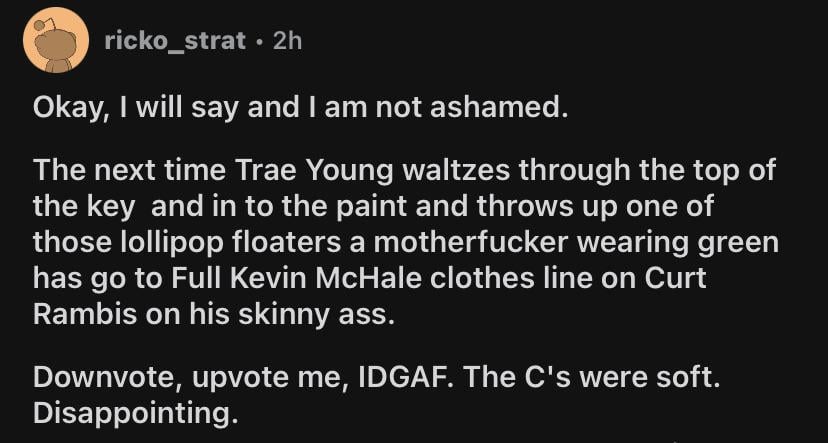 Just so weak to call for someone you don’t know but follow to beat someone else up you’ve never met lol like yeah ofc Tatum or Al could probably really hurt Trae if they wanted but I’m more interested in seeing Trae Young stand next to the guy who commented this lol you meet some rando off the street that is 6’1 and in great shape then he’s gonna be pretty intimidating to almost anyone but ppl out here acting like Trae is the son of Mugsy Bouges and Peter Dinklage