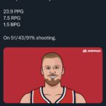 Central DivisionChicago BullsEastern Conference Prev Post [Statmuse] KP is apparently the only NBA player averaging 23/7/1 block on 50-40-90 splits in 2023. March 27, 2023 Next Post Letsss Keep it Rolling 🐺🦁 WOLVES @ KINGS TONIGHT AT 9:00 March 27, 2023 3 Comments Velospine 3 years ago Ese Zach Lavine es All-Nba ChileanDreamer 3 years ago 15 partidos con 9 victoria y 5 derrotas? Me faltó un partido 🤣 Cesar 3 years ago Otra cosa también es que LaVine empezó a ser la primera espada, ya no lo es DeMar Write A CommentYou must be logged in to post a comment.