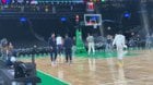 He’s not playing. He’s literally just standing still and shooting. No running, jogging, jumping, cutting. Just causal catch and shoot jumpers in the same spot