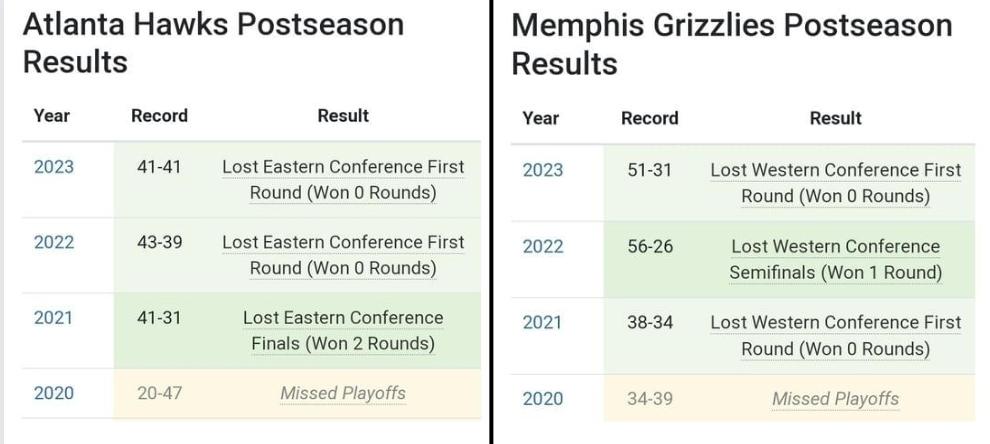 While looking at the post season results, we’re actually very similar with our teams trajectories. Of couse memphis has had better regular seasons, but ultimately the post season matters the most. In recent years, they’ve been knocked out in the first round twice and made it to conference finals once (just like us).