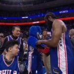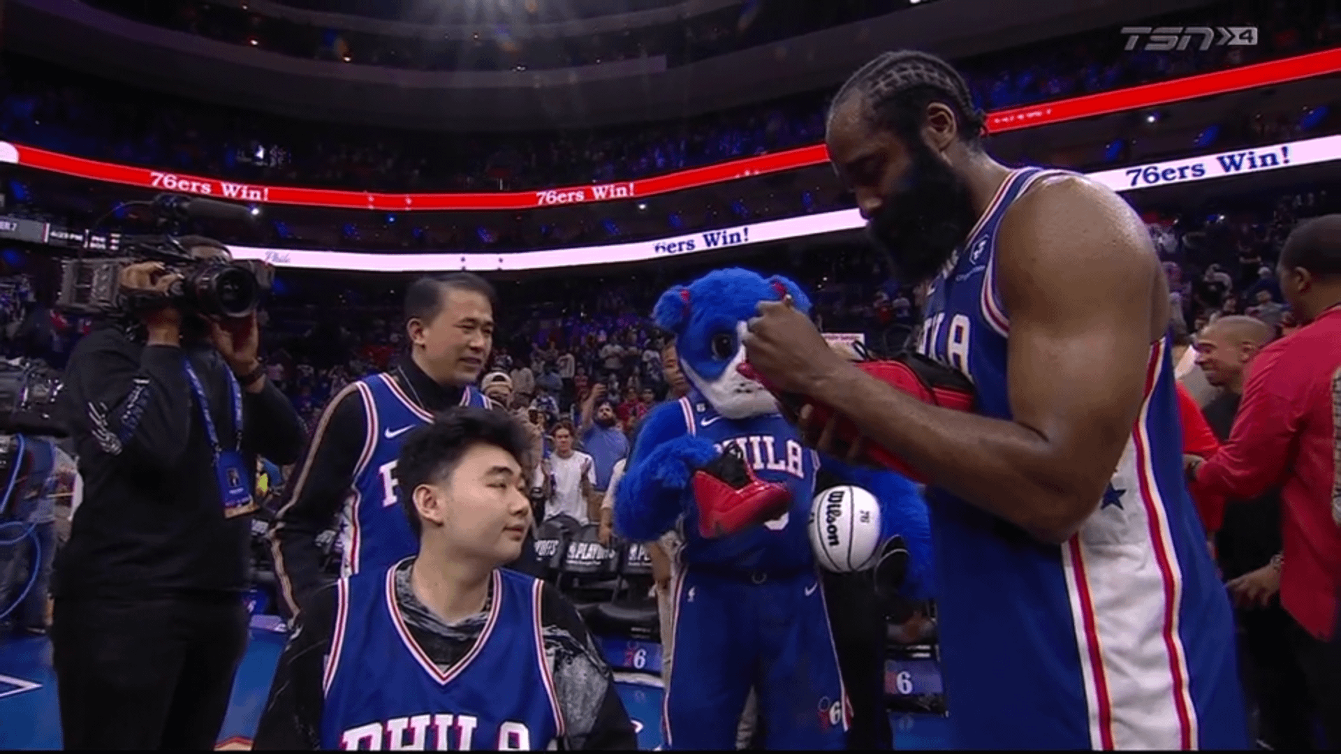 Anybody else catch that Harden took out the shoe inserts and just casually handed them to Franklin (their mascot)? Why did he do that?