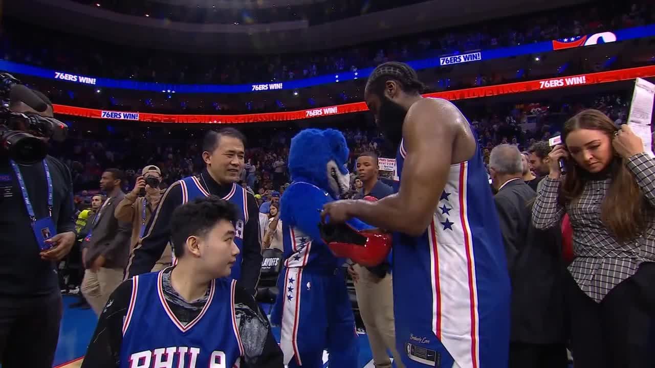 Amazing moment. You can see how much it means to the kid and his family. James Harden is the man.