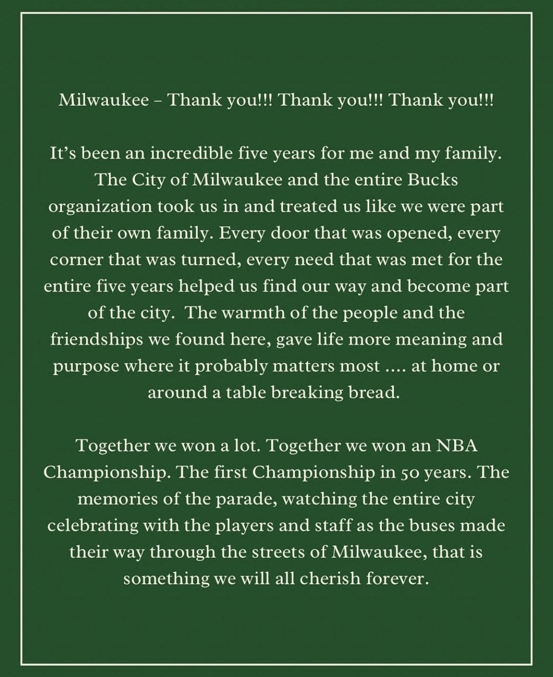 it was probably the right move in the long run but damn it this makes me so sad to see. a massive part of the bucks forever and he made a lot of good memories for me with family and friends for 5 years. I’ll miss coach friend
