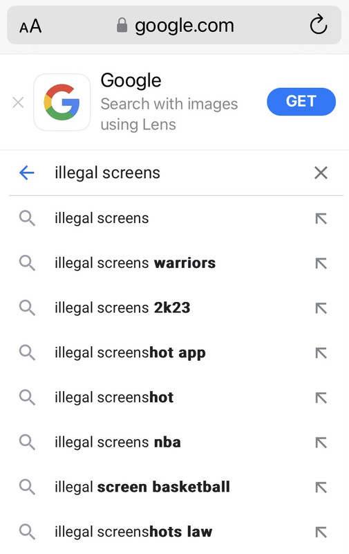 Google “illegal screens” and Google will automatically recommend: “illegal screens Warriors” – really, try it and take a screenshot: https://i.postimg.cc/vTxF6RHF/IMG-6804.jpg