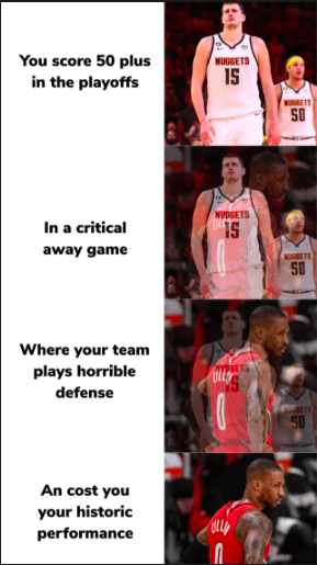 Ya’ll should lend us Dame for a couple of years. It’s clear that the Nuggets only have 1.5 superstars. I would even argue 1.25 most nights.