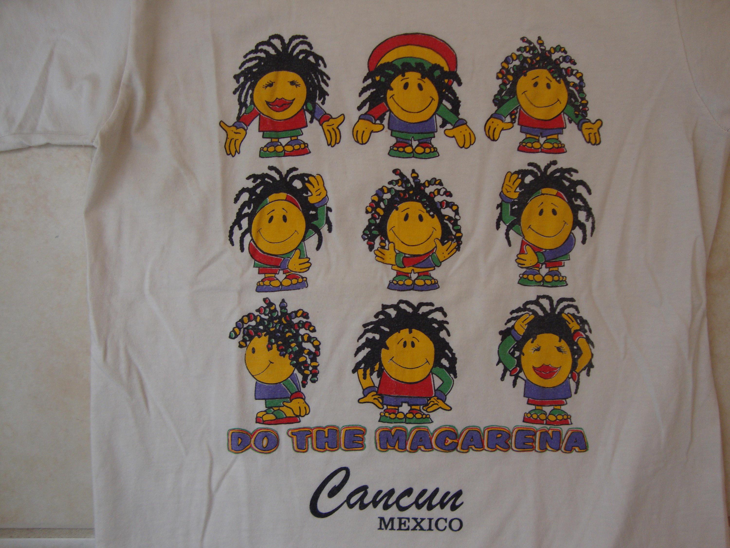 It was a crew neck and it had little anthropomorphic basketballs with feet and hands and bull horns, they were wearing bulls jerseys and doing the Macarena