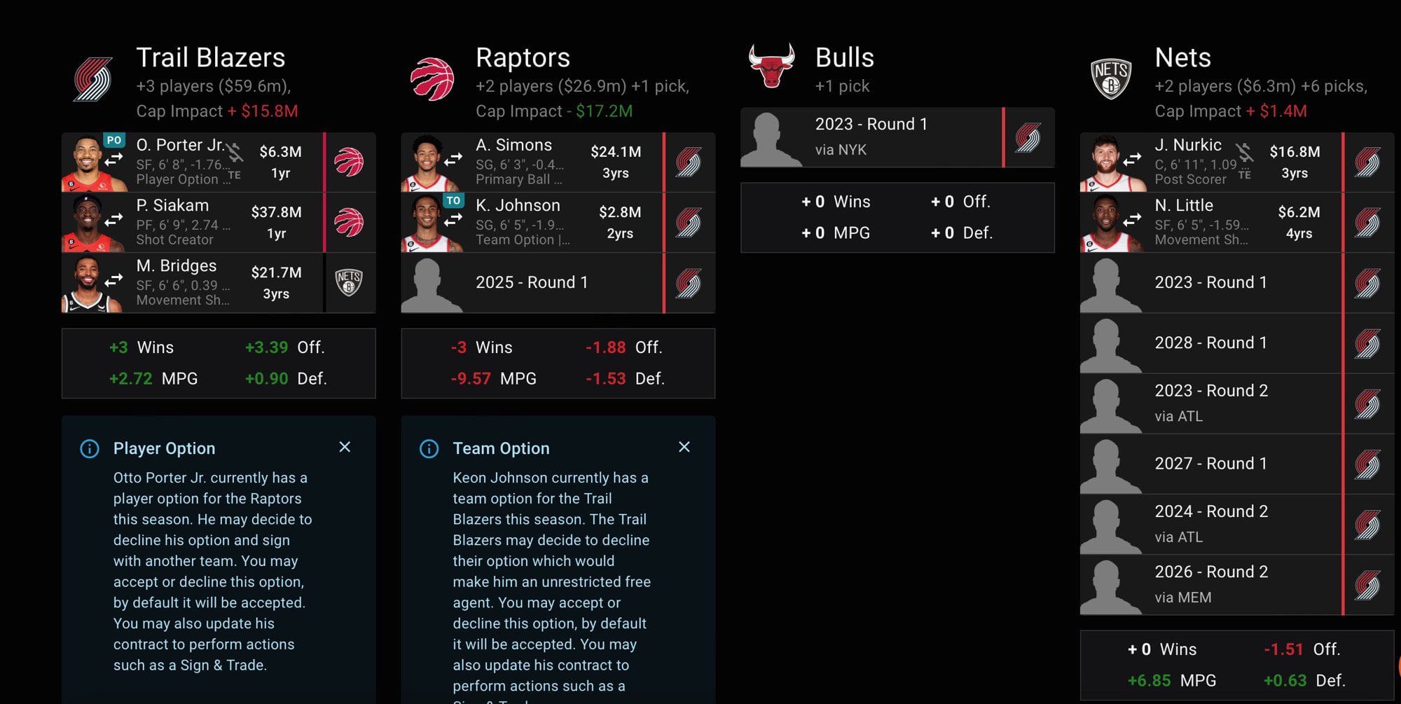 *Trade assumes that all teams involved are Blazers fans and want to charitably help us get better*