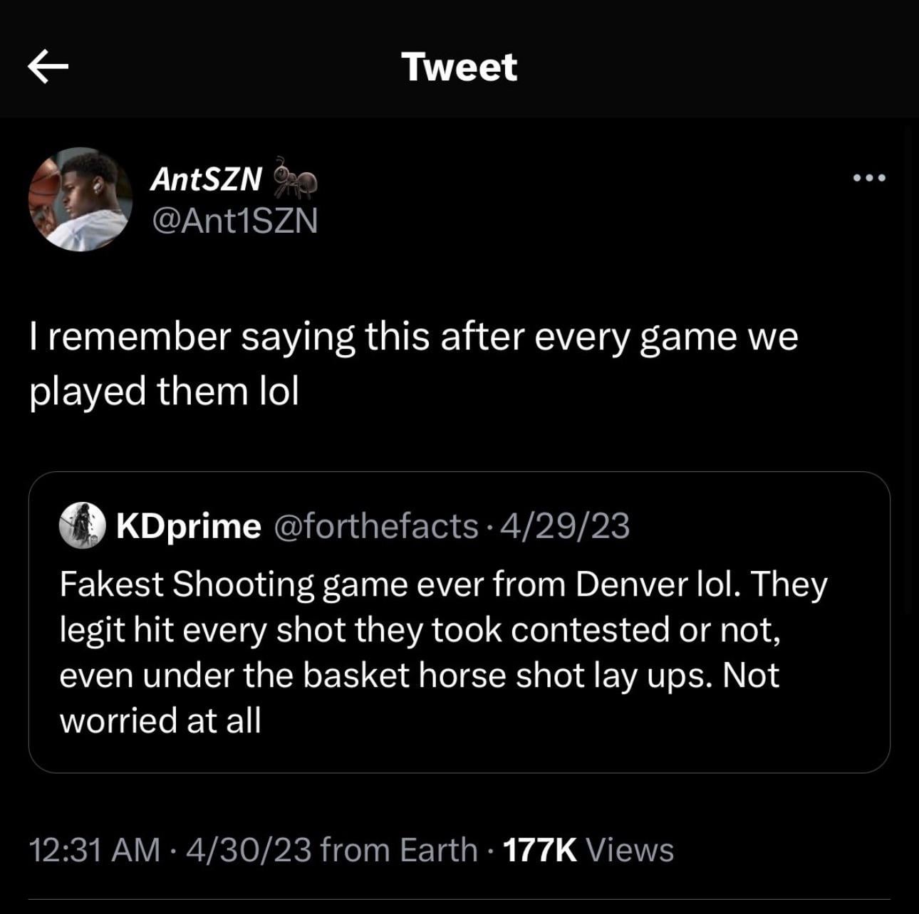 I hope there are some adjustments that address Hachi on Jokić. Something similar happened in that collapse in Philly (PJ Tucker on Jok) when they started hyping Embiid as the undisputed MVP.