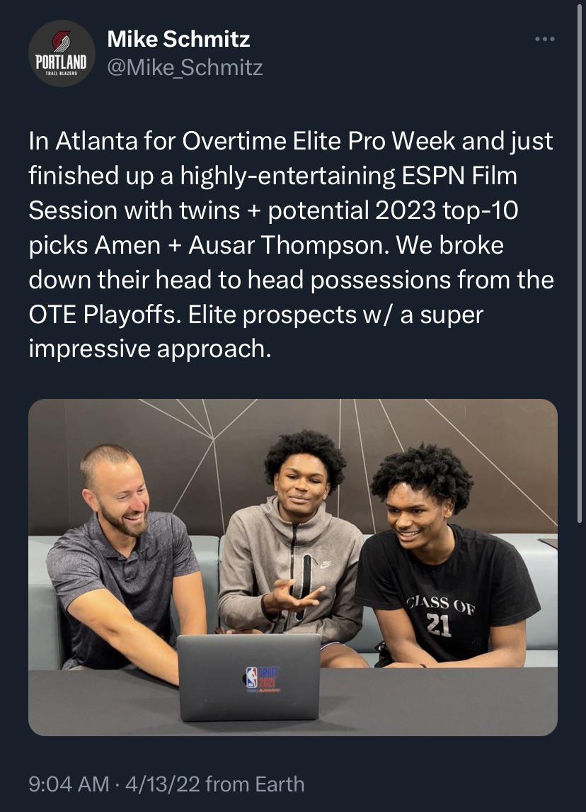 Seriously. The Thompsons have upside, but there aren’t more overhyped players in this draft class and only the overall weakness of the class is letting them stay so high. As a late-lottery pick, they’re maybe worth a gamble because they’ve got NBA bodies and they don’t appear to be stupid and that’s a combination that’s worth a flutter late in the lottery. But at #3? Brandon Miller and Scoot are both absolutely better options to take than the Thompson twins are. Hell, Gradey Dick and Cason Wallace are better options than they are, and you shouldn’t pick either of those guys at 3.