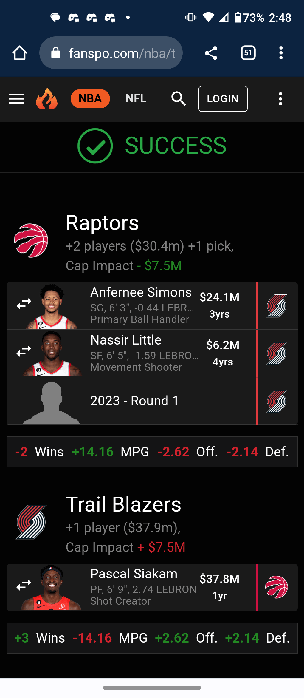 Locked on raps and Blazers did a crossover pod with this exact trade, if ur interested.