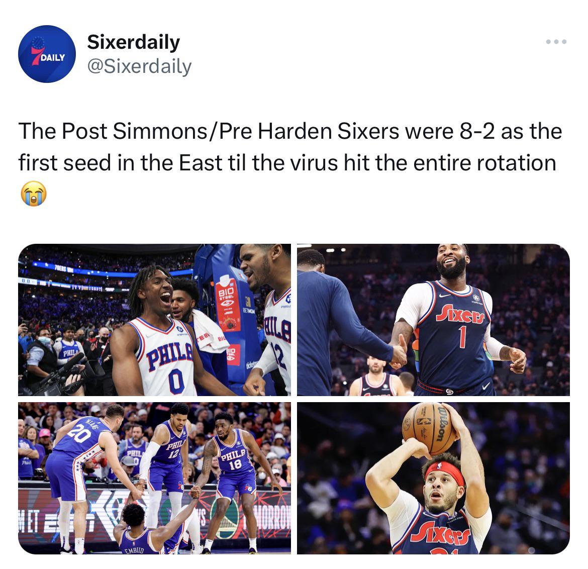 People forget that this team wasn’t fucked before Harden arrived they were having a great season with Embiid carrying .