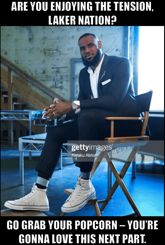 Lol Bron and AD would each have to drop 40+ and coach Ham actually benching DLo for the rest of the series in order for us to have a shot. Not seeing either of that happening 😂