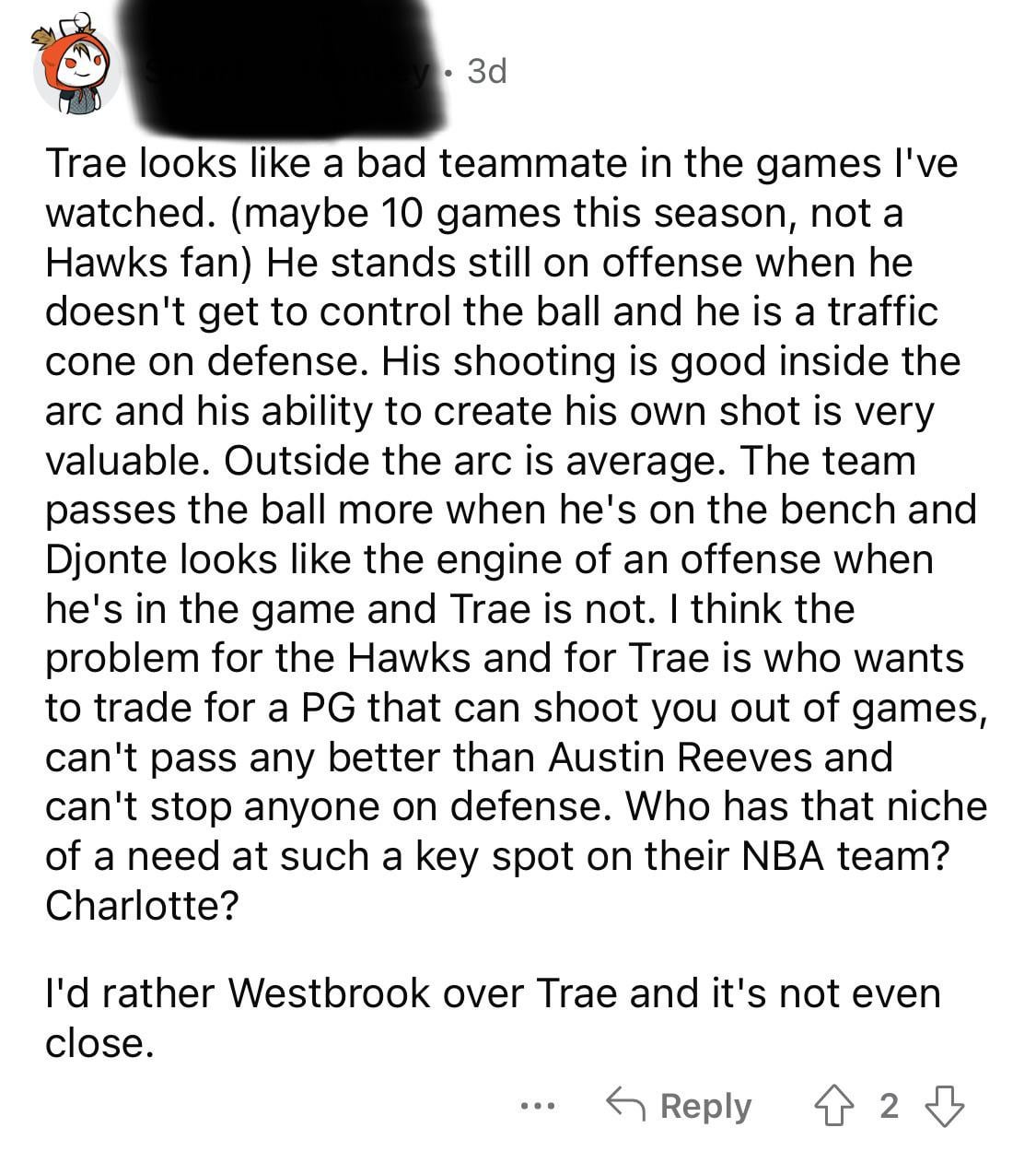 What’s funniest to me is he lists Charlotte as one team that could need him when they have Lamelo, who fills a very similar role to Trae