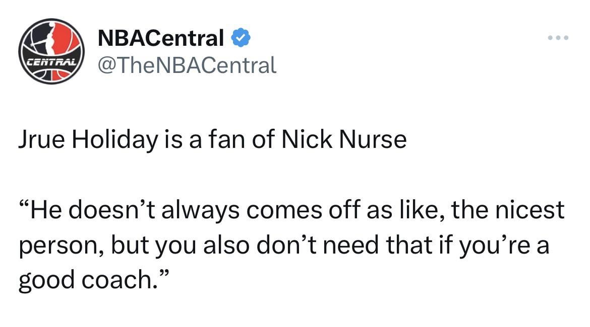 Jrue pushing the Nick Nurse’s agenda 🙏🙏🙏🐐🐐🐐 by Informal_Jelly4384 Central DivisionEastern ConferenceMilwaukee Bucks Prev Post Atlanta Hawks on TikTok May 25, 2023 Next Post Brian Windhorst explains which NBA head coach vacancies provide the most stability | First Take May 25, 2023 1 Comment seattle_raptors 3 years ago Jrue was likely not of fan of Butler “busting his ass” for 5 games without any helpWrite A CommentYou must be logged in to post a comment.