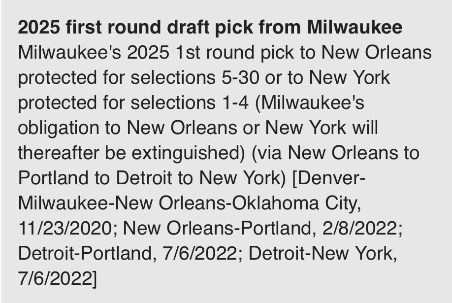 The pick goes to New Orleans if it’s 1-4 and goes to New York if it’s 5-30
