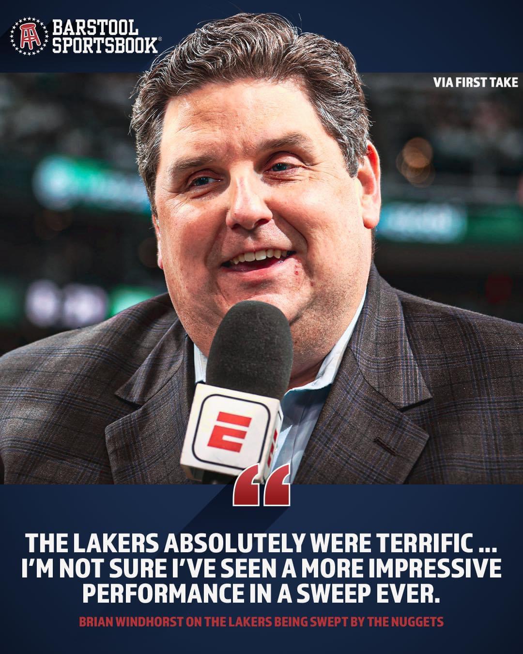 Hey, if he wants to say the Lakers were terrific and the Nuggets swept their asses, what’s that saying about the Nuggs. Have another donut, Windy. You deserve it.