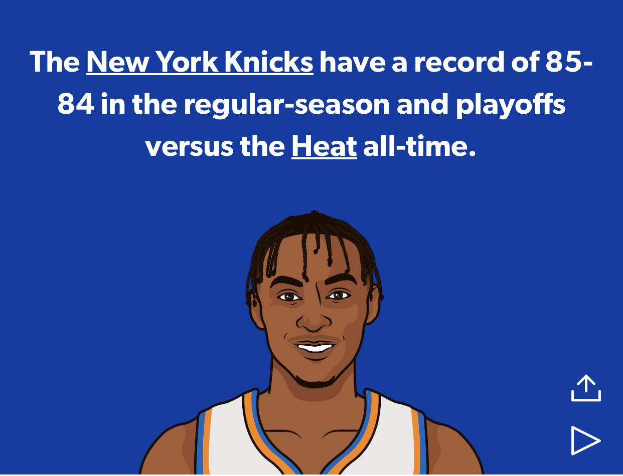 The Knicks are 85-84 against the Miami Heat. Considering Miami has made 6 Finals since 2006 and solid in the late 90s. This is impressive