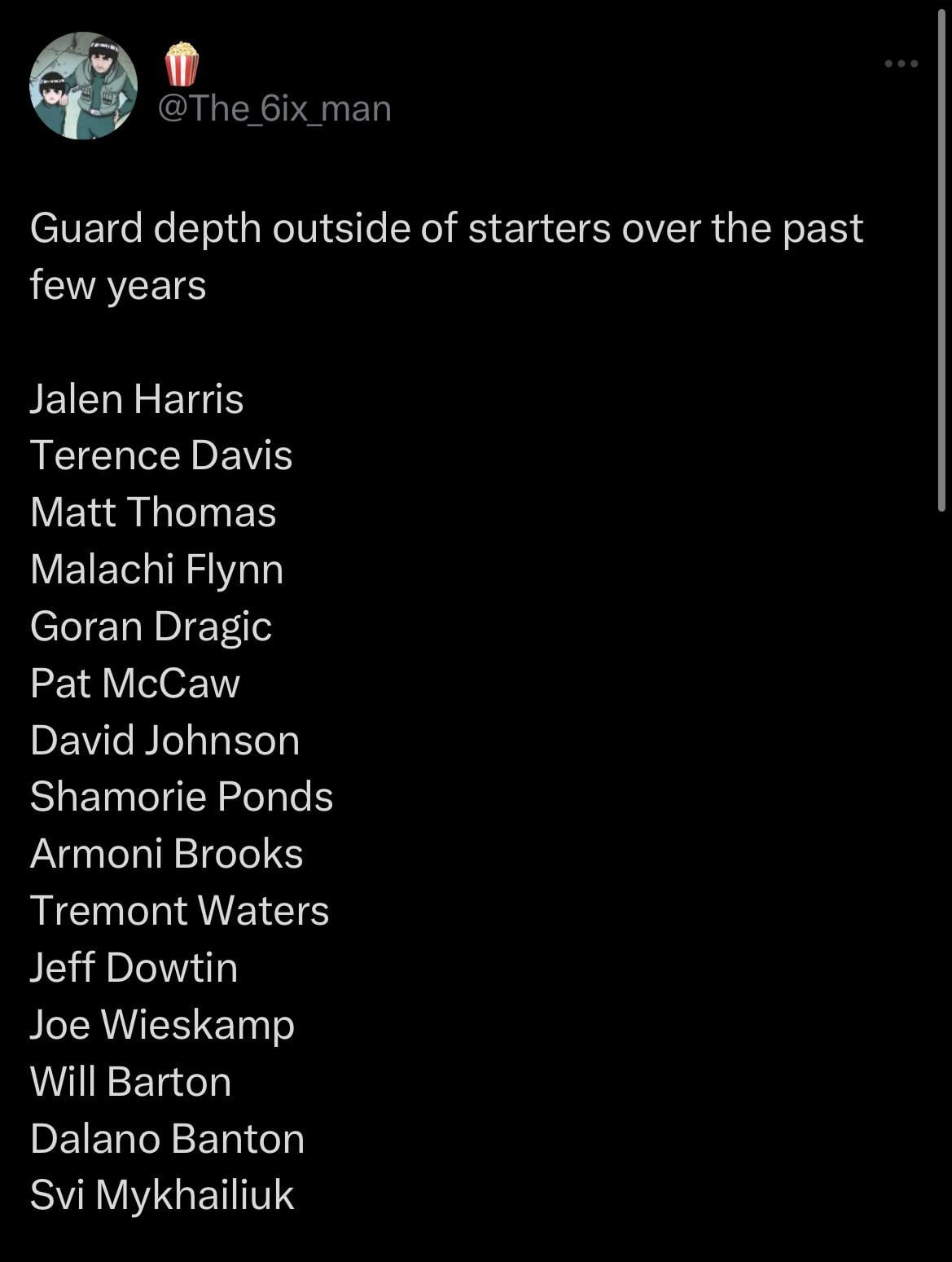 Like, when the best of these guards is a debate between a washed up dragon, an alleged spousal abuser who’s done a lot of nothing in Sacramento since and Jeff Dowtin Jr., you know the guard situation has been the biggest problem with the team besides the lack of a center