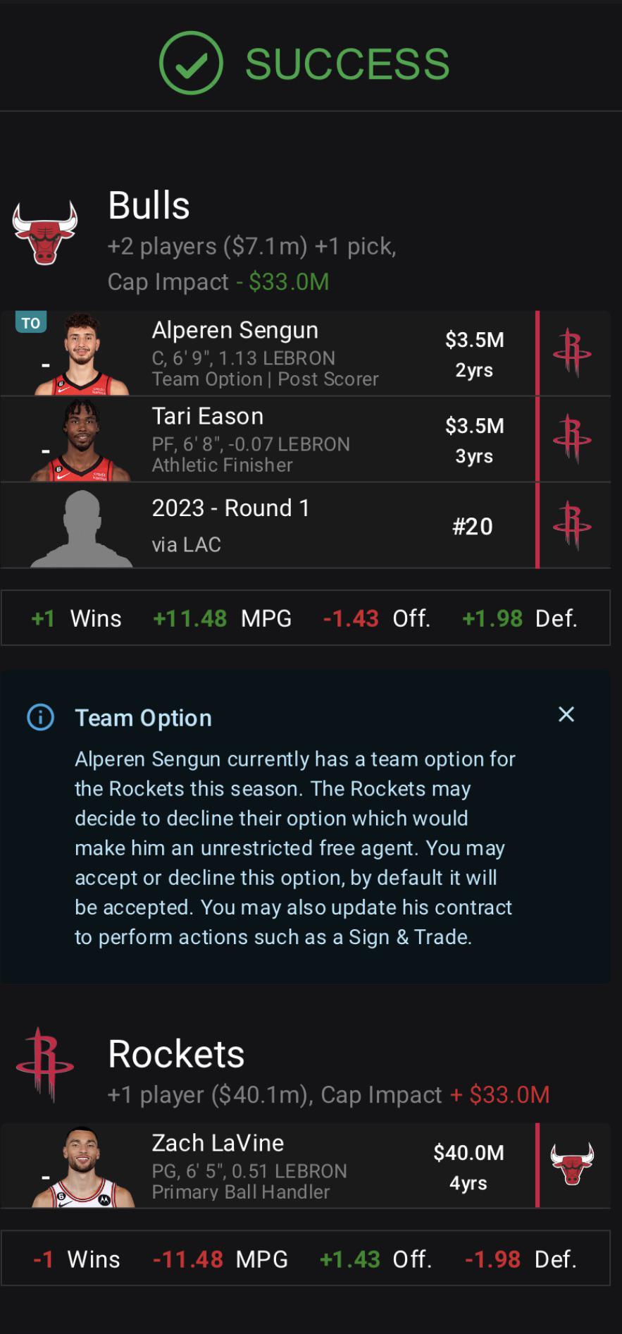 As much as he turns the ball over, I’m not sure trading Lavine for 2 guys who don’t handle the ball is a good idea. I’m not sure the Rockets do this anyway, that’s a lot of young cost control for not young and very high paid.