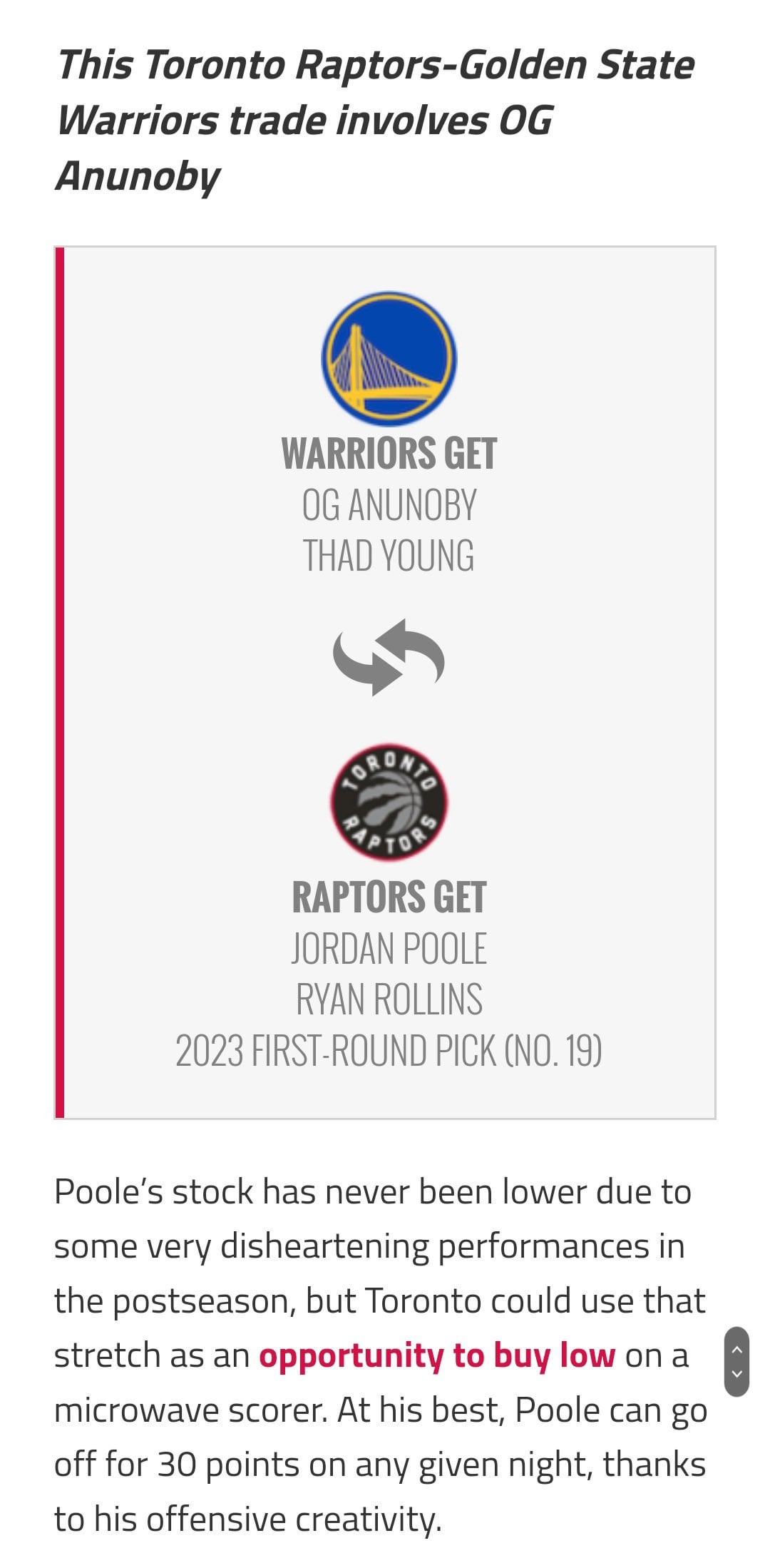 So Pooles stock has “never been lower” and we should “buy low”. Then proceeds to have us over pay by giving up OG. This trade is fucking gross