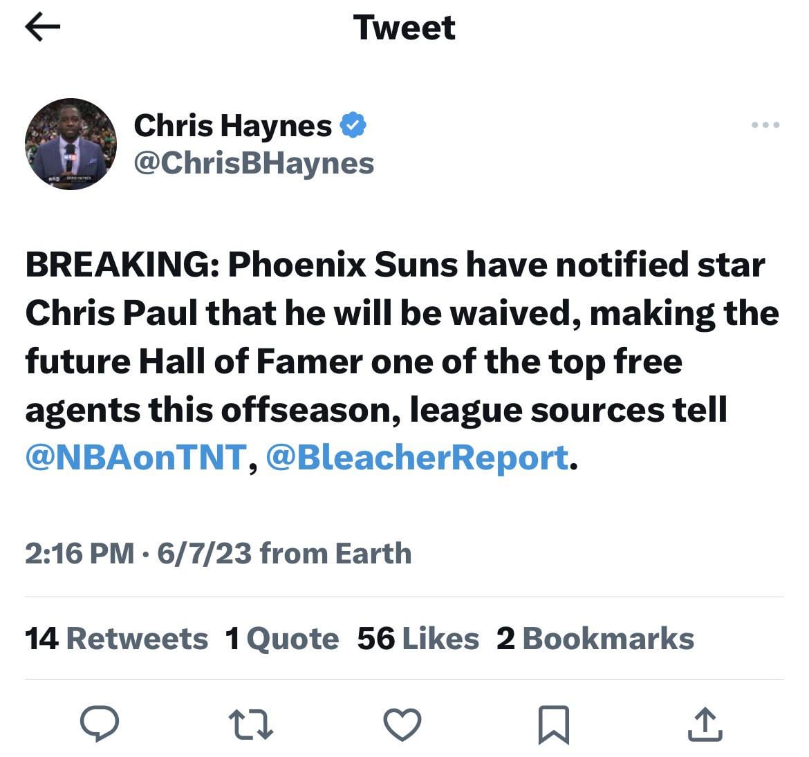 My heart says yes but my brain says no. We have enough injury prone players as it is and while I’d love a CP3 reunion, he won’t help much on that front. Happy he’s out of Phoenix though!
