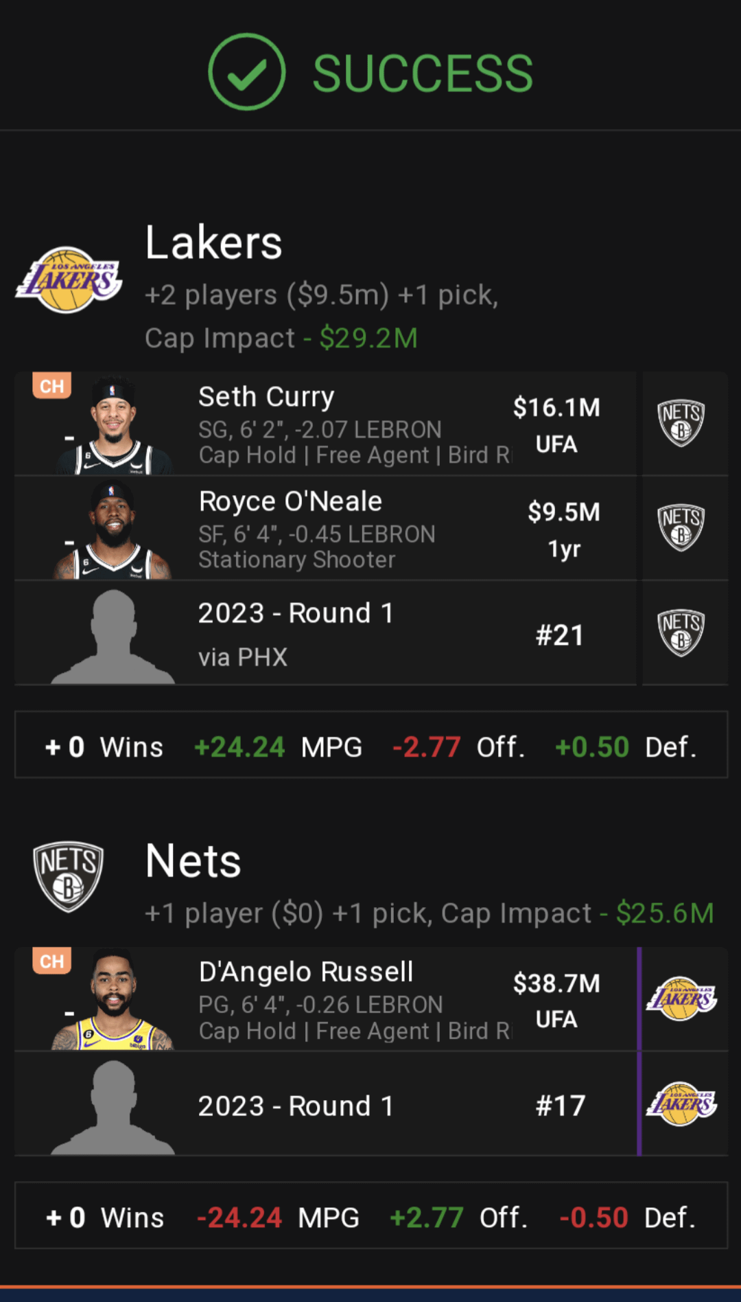 Curry and Dlo are FAs