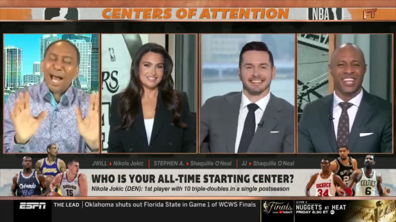 Stephen A. Smith: “Jokic isn’t known for having some kind of dominant post game. It’s not his game”. JJ Redick responds: “Stephen A., we have got 10 years of tracking data. You know what the most efficient half court play is? In 10 years? A Nikola Jokic post-up.”