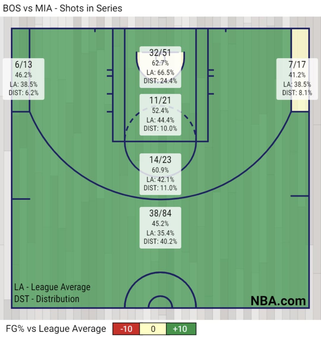 That said, I would be interested in seeing a similar heatmap for just open shots: the Nuggets are playing tighter, more connected defense than we did, but if you control for that… pretty sure it would look exactly the same. Fuck the Heat.