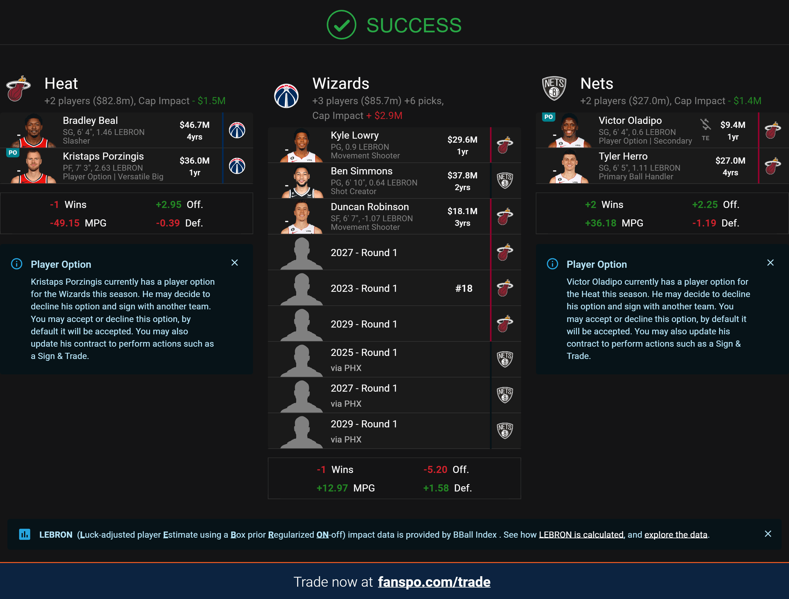 BayTerp 3 years ago Honestly I like it. This makes both the Nets and Heat better while giving us some assets.