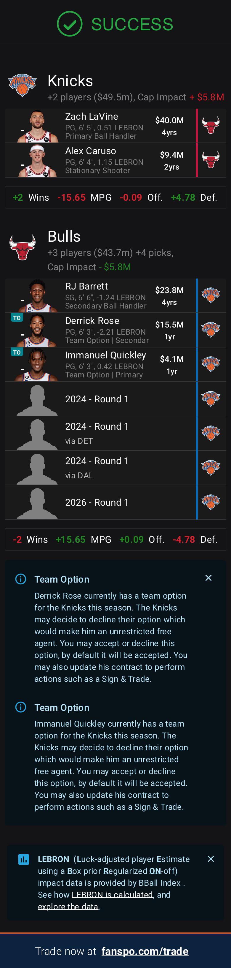 There’s just no way NYK would do that. Remove two of the 1sts, or Quickley and one of the 1sts and maybe.
