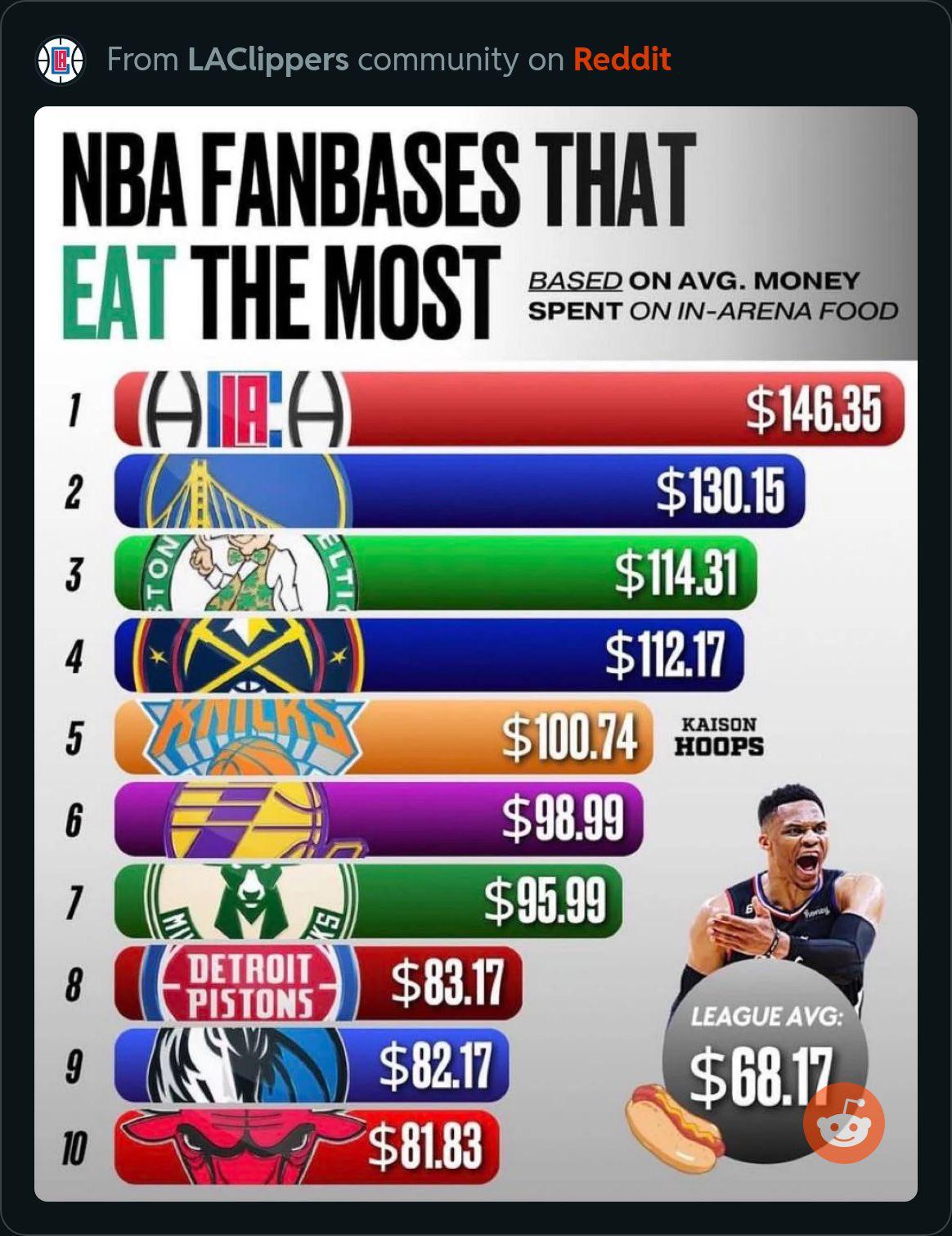 I’m not surprised the clippers lead the league. I will be depressed watching that team too, but I can at least eat my depression out.