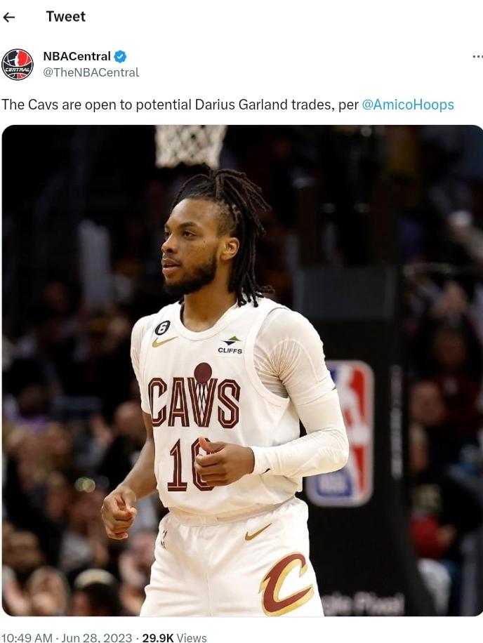 Cavs want a 3+D SF right? Sign and trade Khris? I’m very intrigued by the duo of Garland and Giannis for something of a timeline reset.