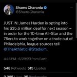 BREAKING: 76ers G James Harden is picking up his $35.6 million option and sides are beginning to work together in exploring trade scenarios, sources tell ESPN. It’s expected that Harden has played his last game for Philadelphia