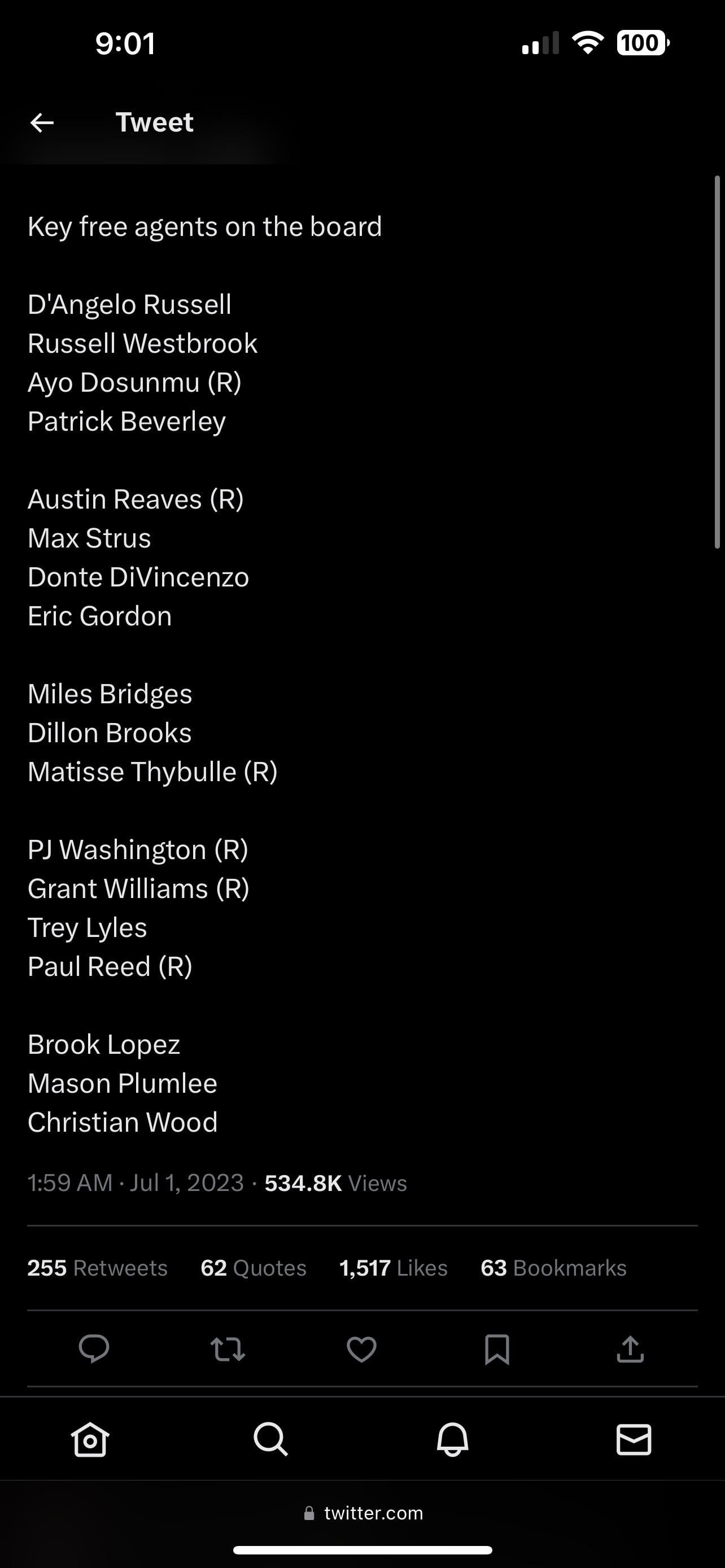 Reaves obviously would be huge but I’m sure the Lakers tie us up so we can’t spend then just match at the last minute.