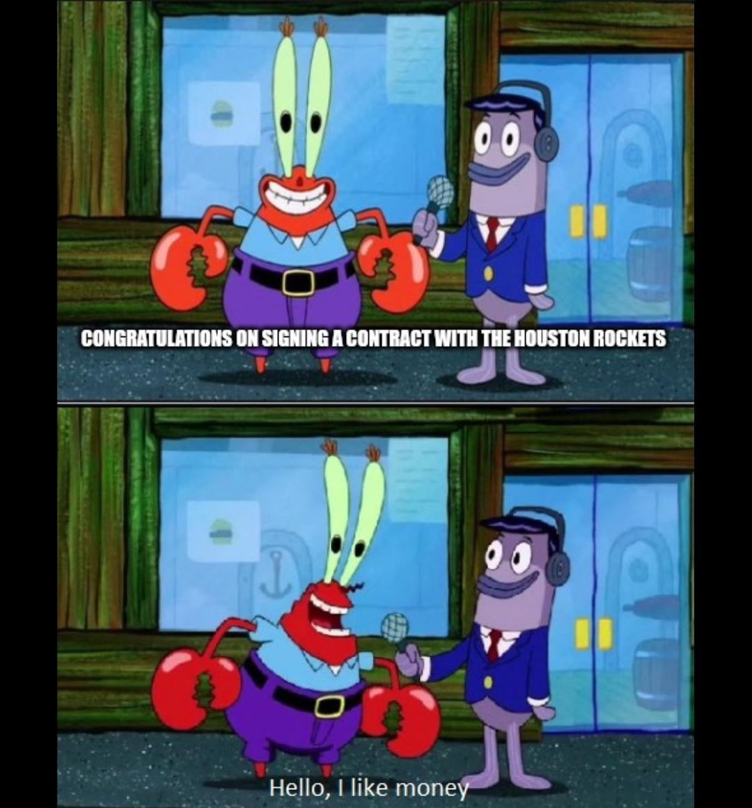 Why else would you sign here if you didn’t care about the rockets and wanted to win? Money. The end